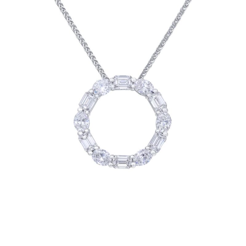 2.63 carat Emerald cut and Oval Cut Diamond Circle Pendant Necklace in Platinum