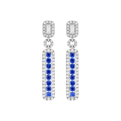 Spark1.08 carat Blue Sapphire and 0.93 carat Diamond Drop Earrings in White Gold