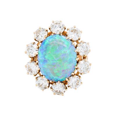 Vintage Opal and 1.90 carat Diamond Cluster Cocktail Ring in Yellow Gold