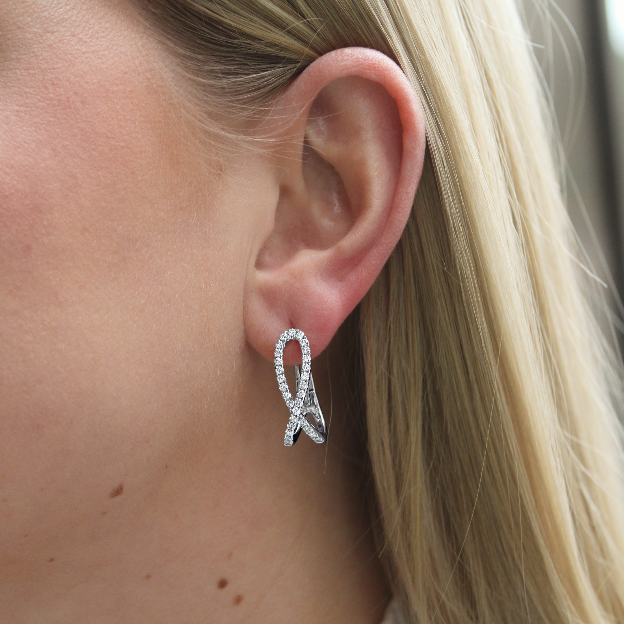 Marshall Pierce and Company Chicago curated 0.12 carat Round Brilliant Cut Diamond Crossover Drop Earrings in 18K White Gold, Hinge and Post Back