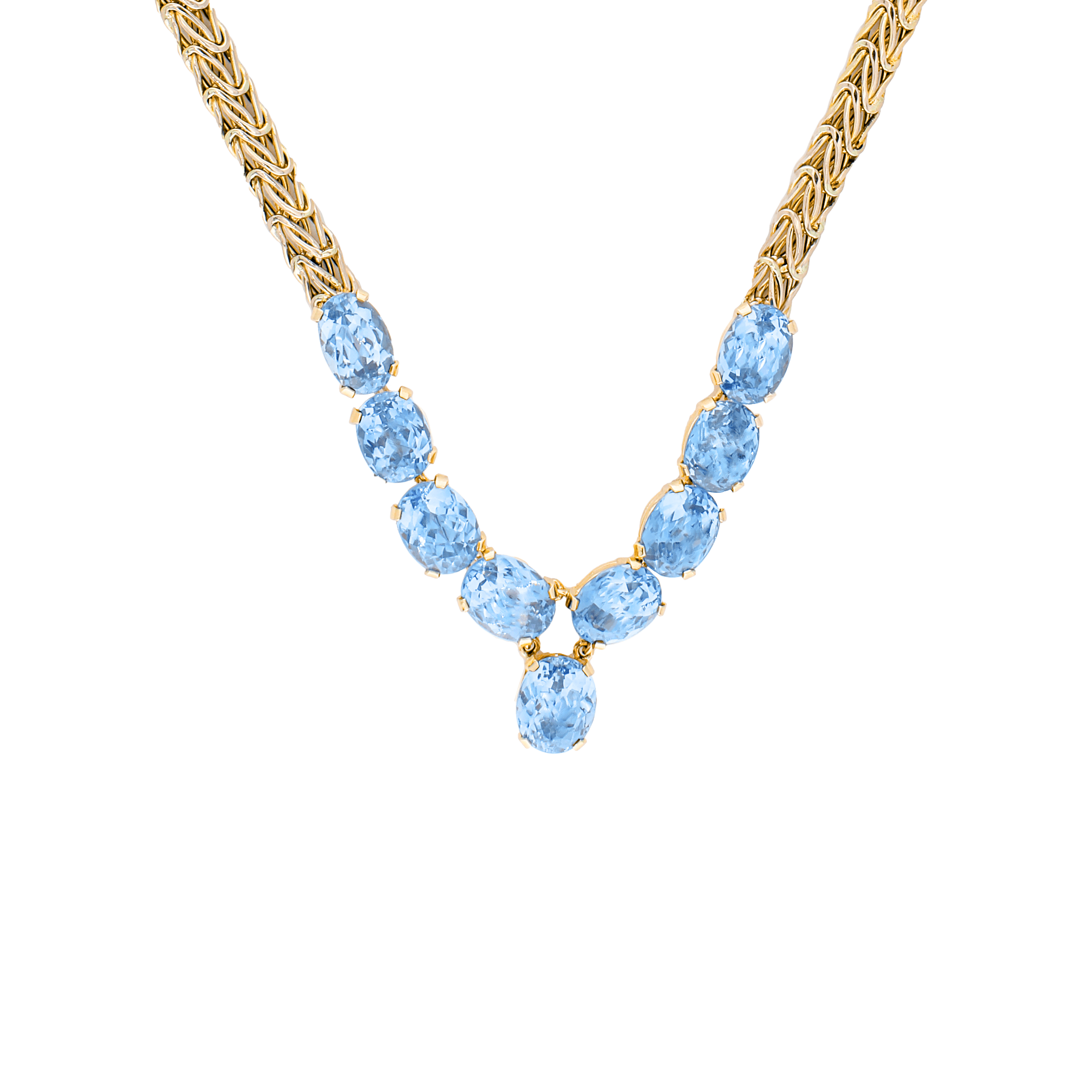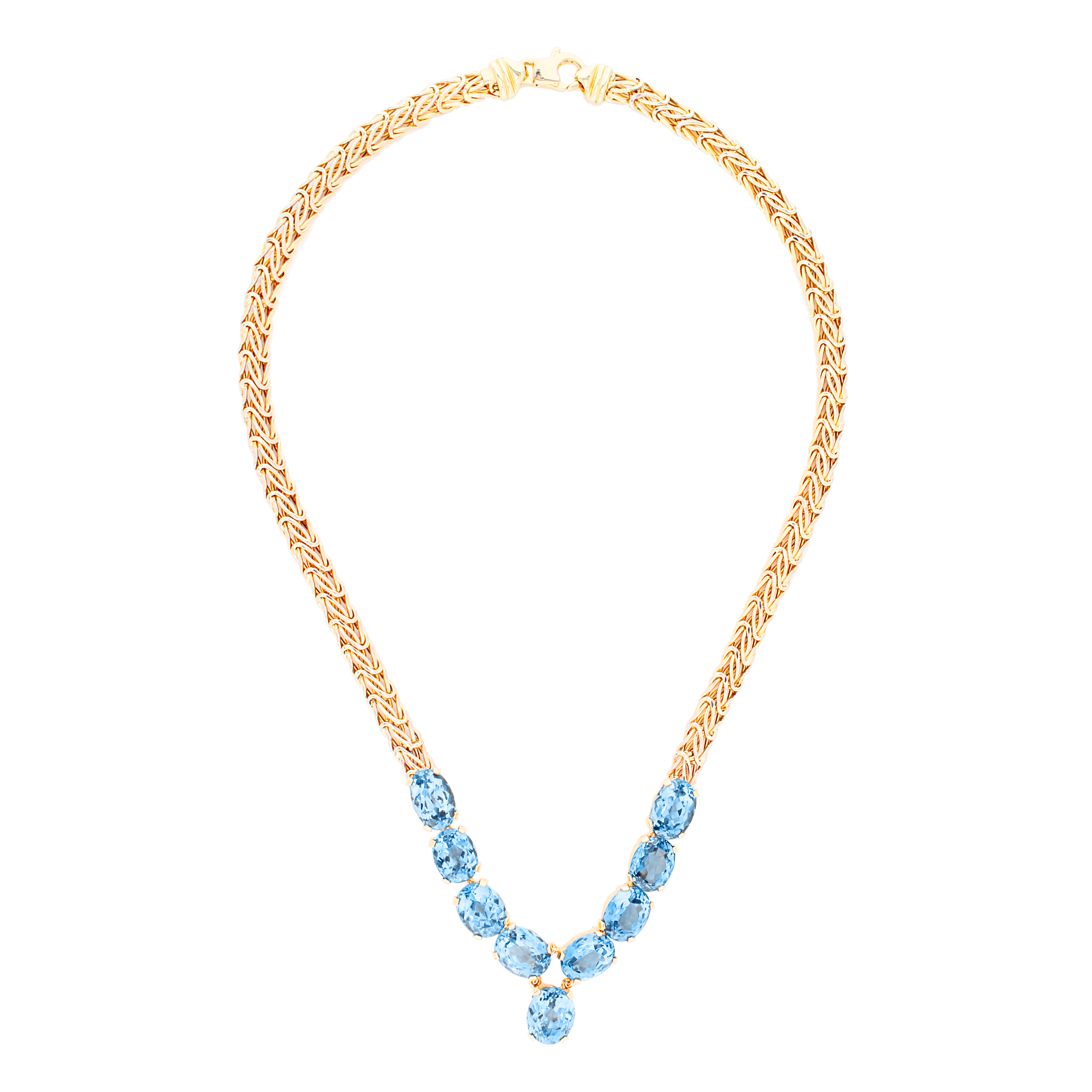 Marshall Pierce and Company Chicago Estate Jewelry Nine (9) Oval Blue Topaz stones weighing a total of 0.45 carats Necklace set on 14K Yellow Gold chain