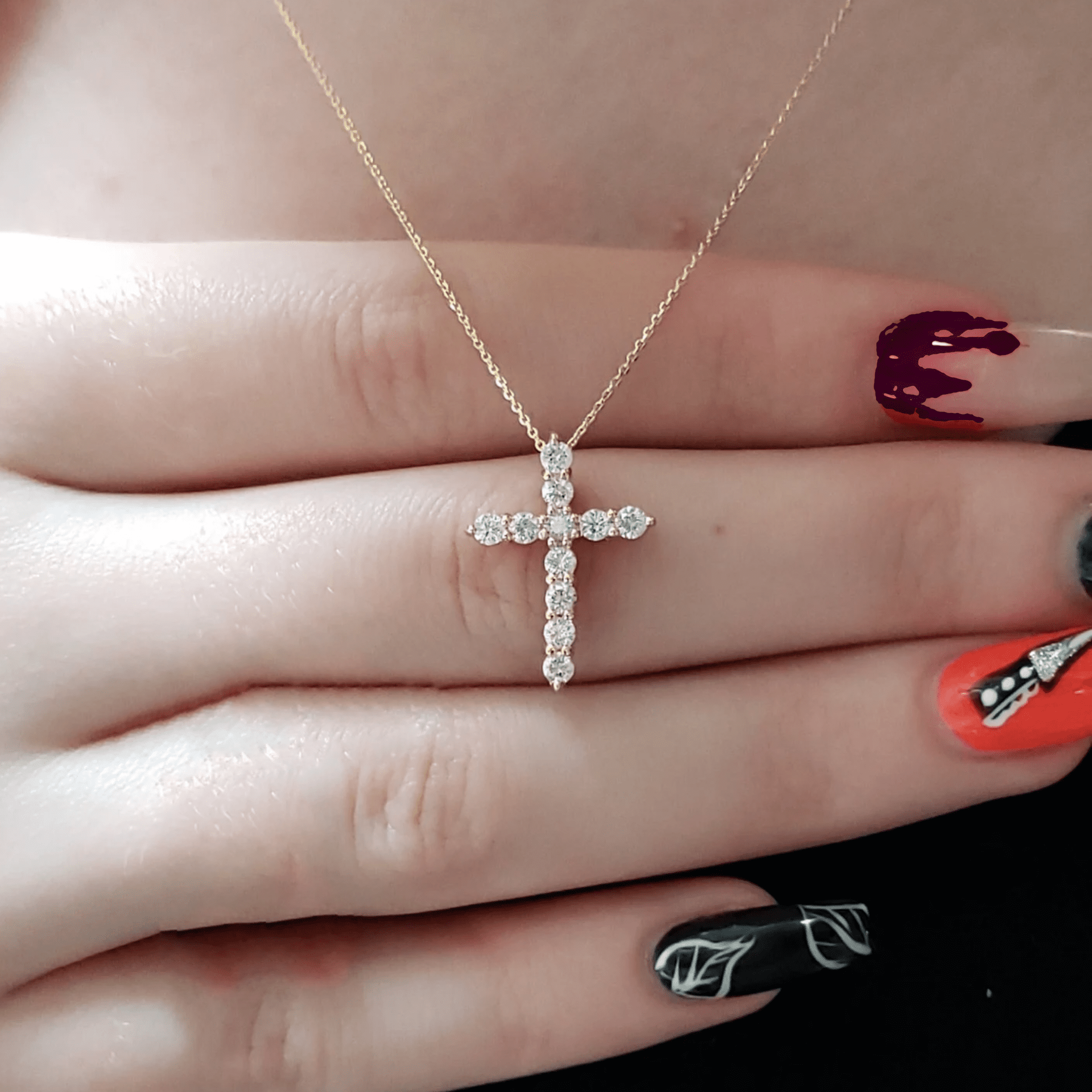 0.54 carat Diamond Cross Pendant Necklace in Yellow Gold