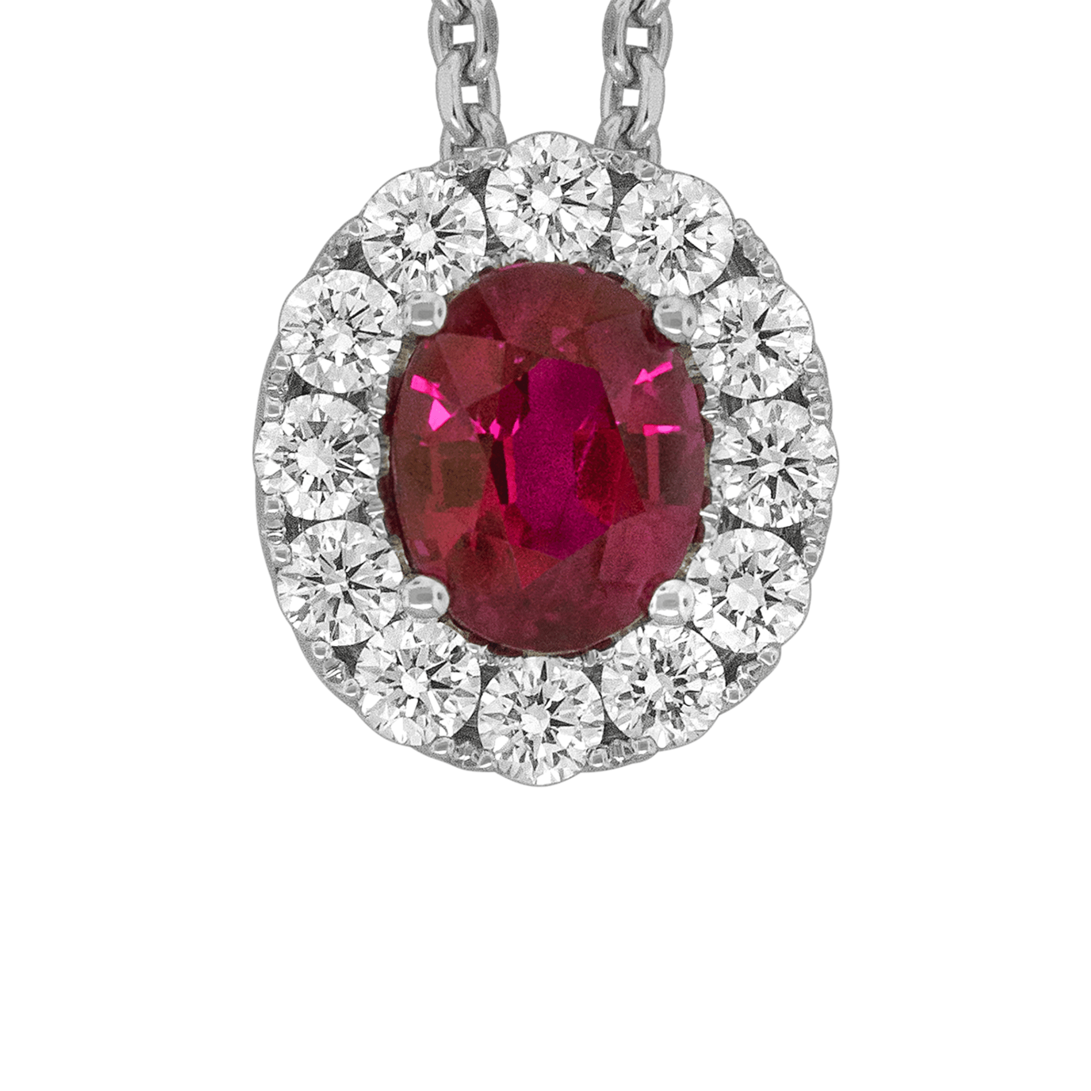 Spark Creations 0.75 carat Oval Ruby and 0.36 carat Diamond Halo Pendant in White Gold