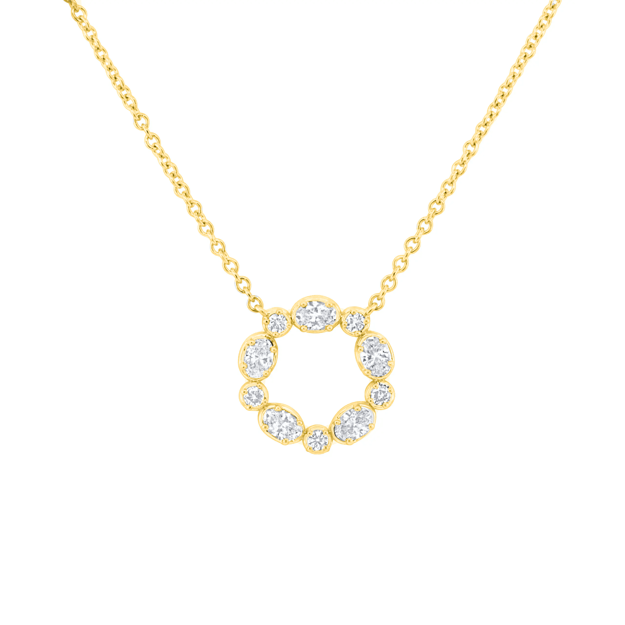 0.85 carats Alternating Oval and Round Bezel-set Circle Pendant in Yellow Gold
