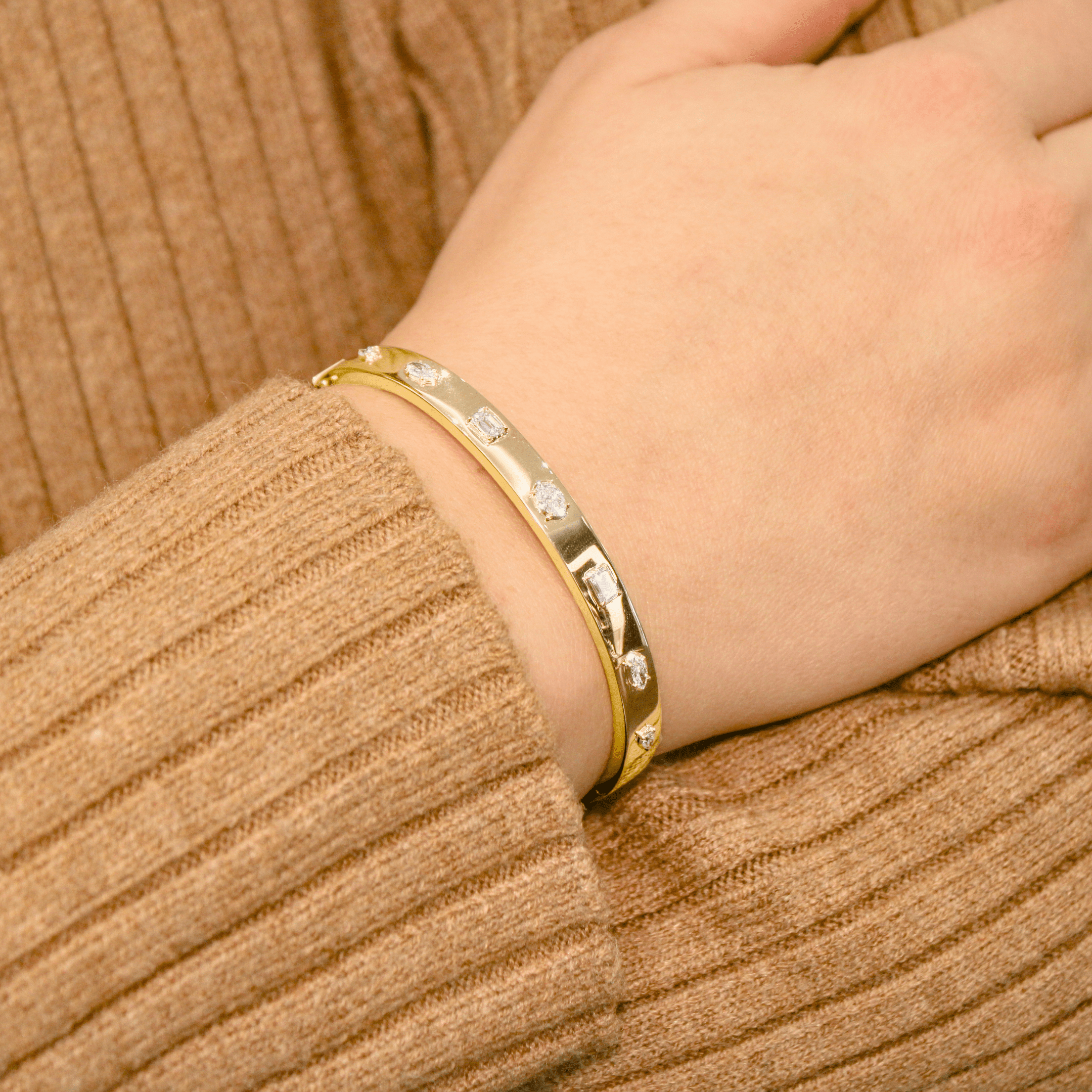 0.95 carat Mixed Diamond Bangle Bracelet in Yellow Gold