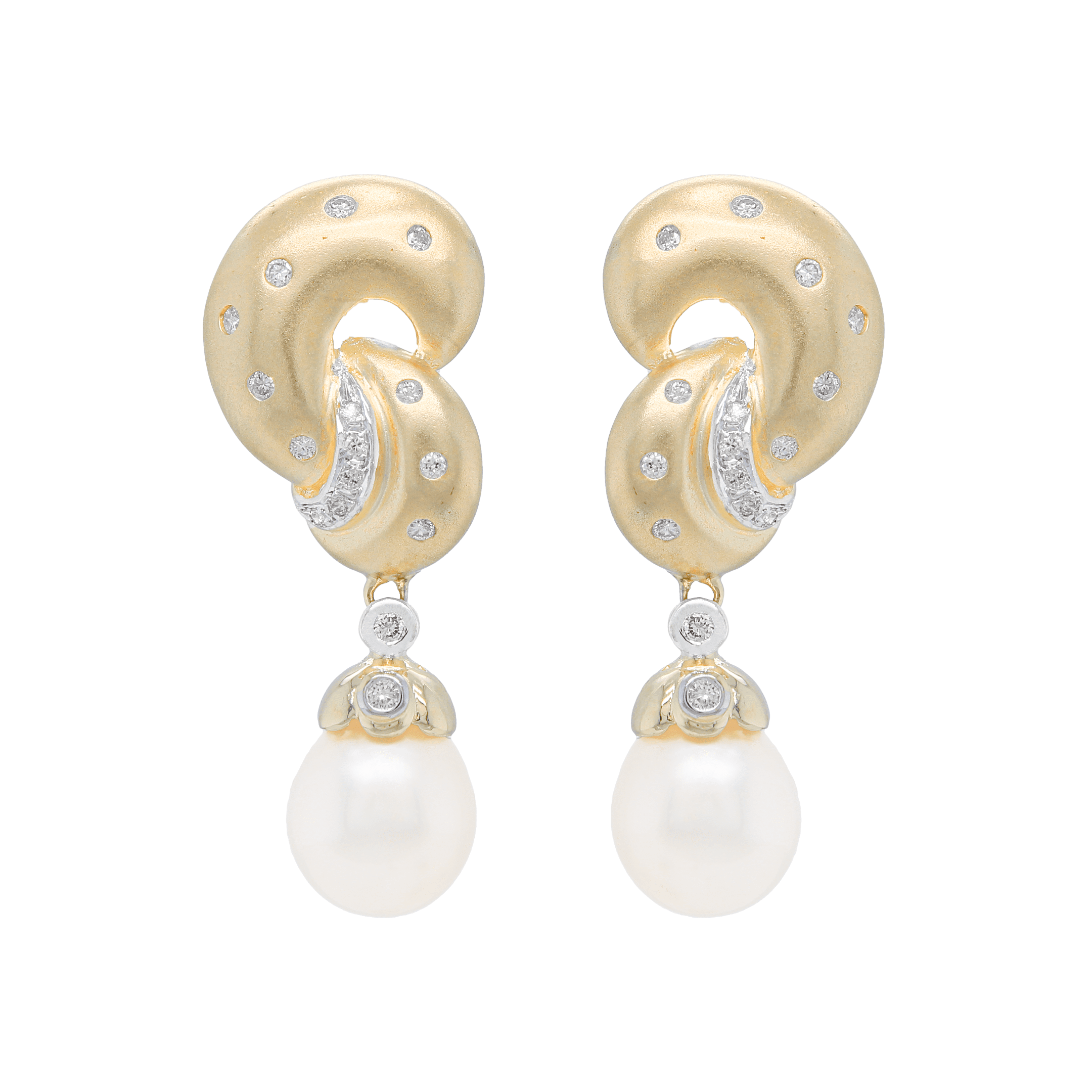 Marshall Pierce and Company Chicago Estate Jewelry forty (40) Round Brilliant cut Diamonds weighing a total of 1.00 carats with Pearl Drop Earrings in Brushed 14K Yellow Gold