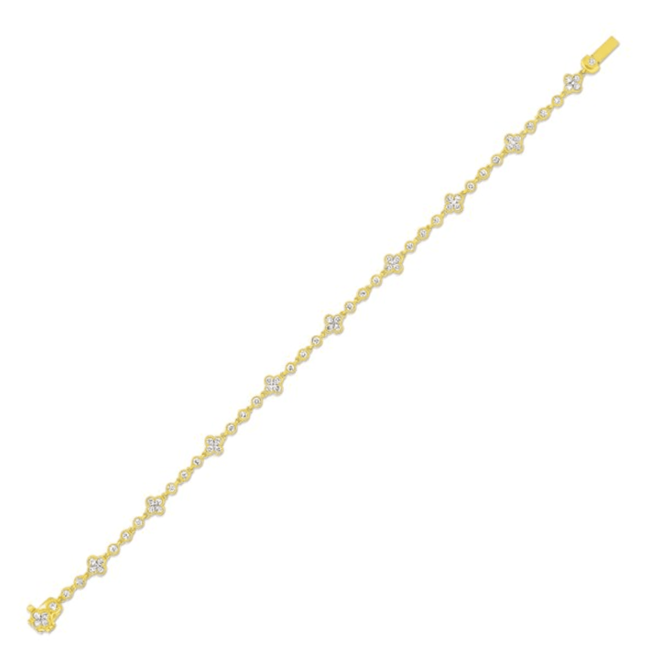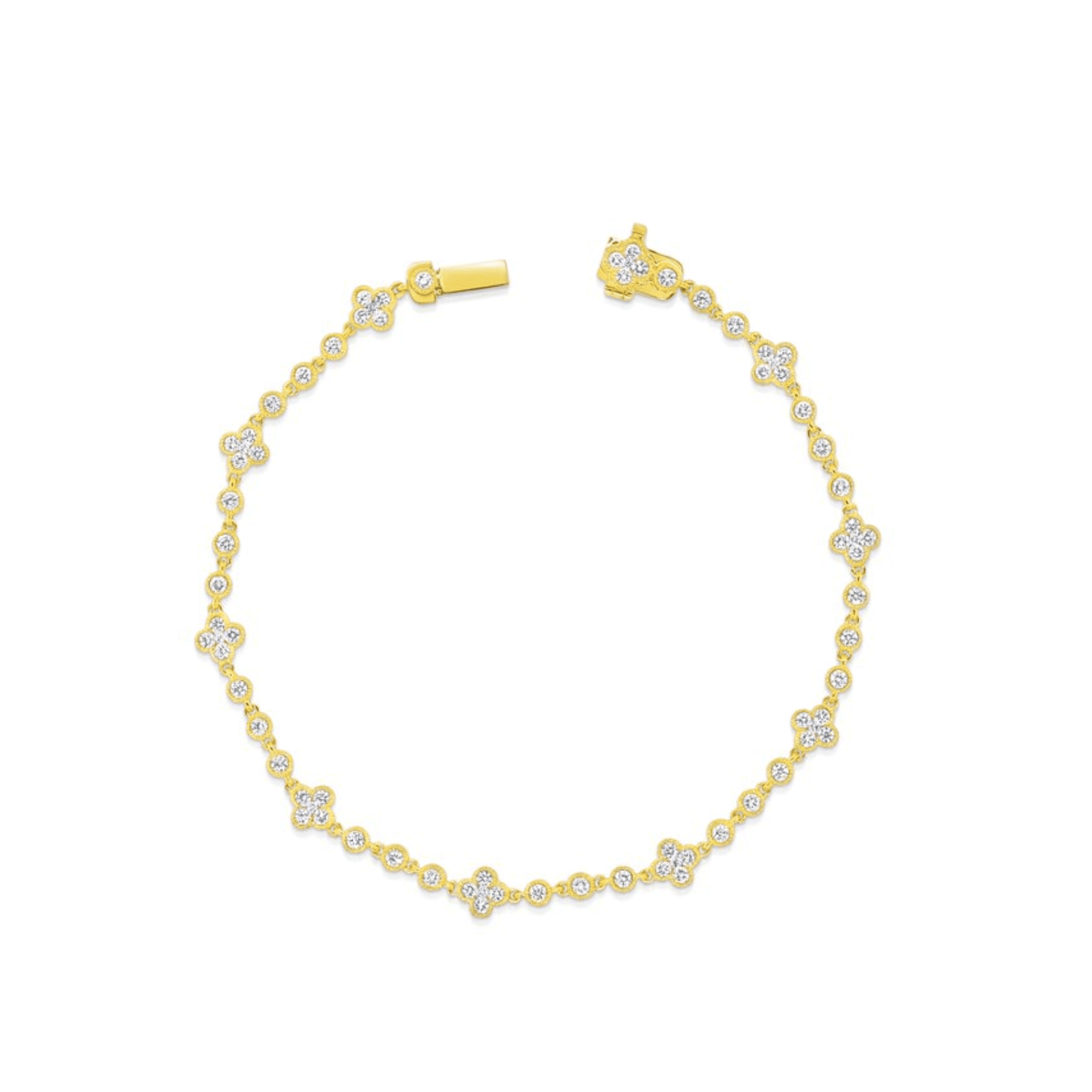 Marshall Pierce and Company Chicago curated seventy eight (78) Round Brilliant cut Diamonds weighing a total of 1.35 carats G Colors, VS Clarity Clover Design Bracelet in 18K Yellow Gold