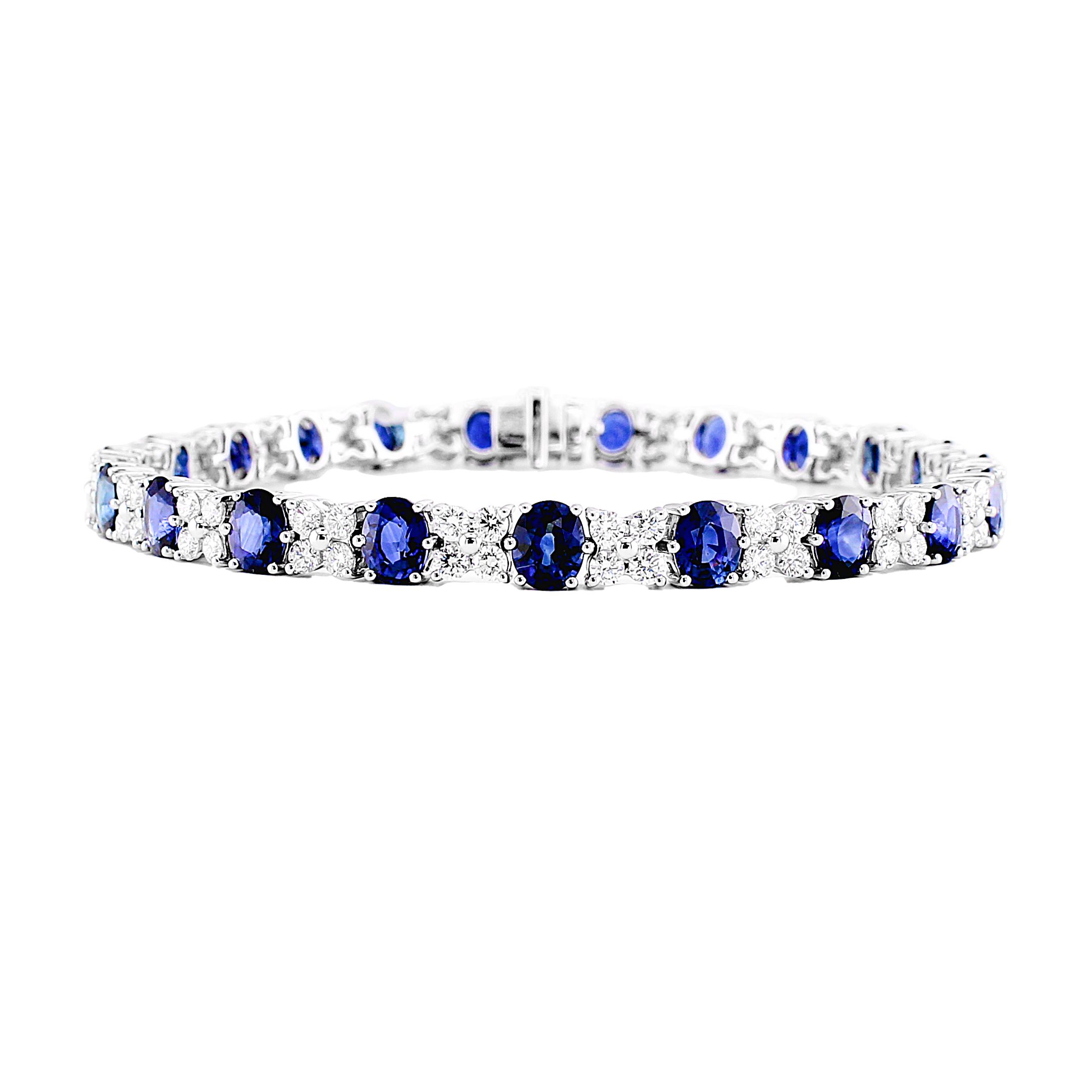 10.50 carat Oval Sapphire and 2.94 carat Oval Diamond Tennis Bracelet in White Gold