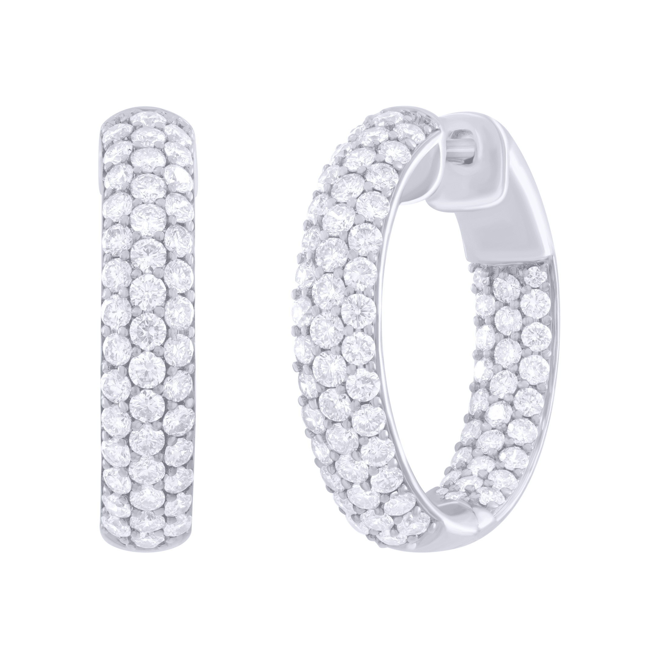 2.38 carat Three Row Inside Out Diamond Hoop Earrings in White Gold