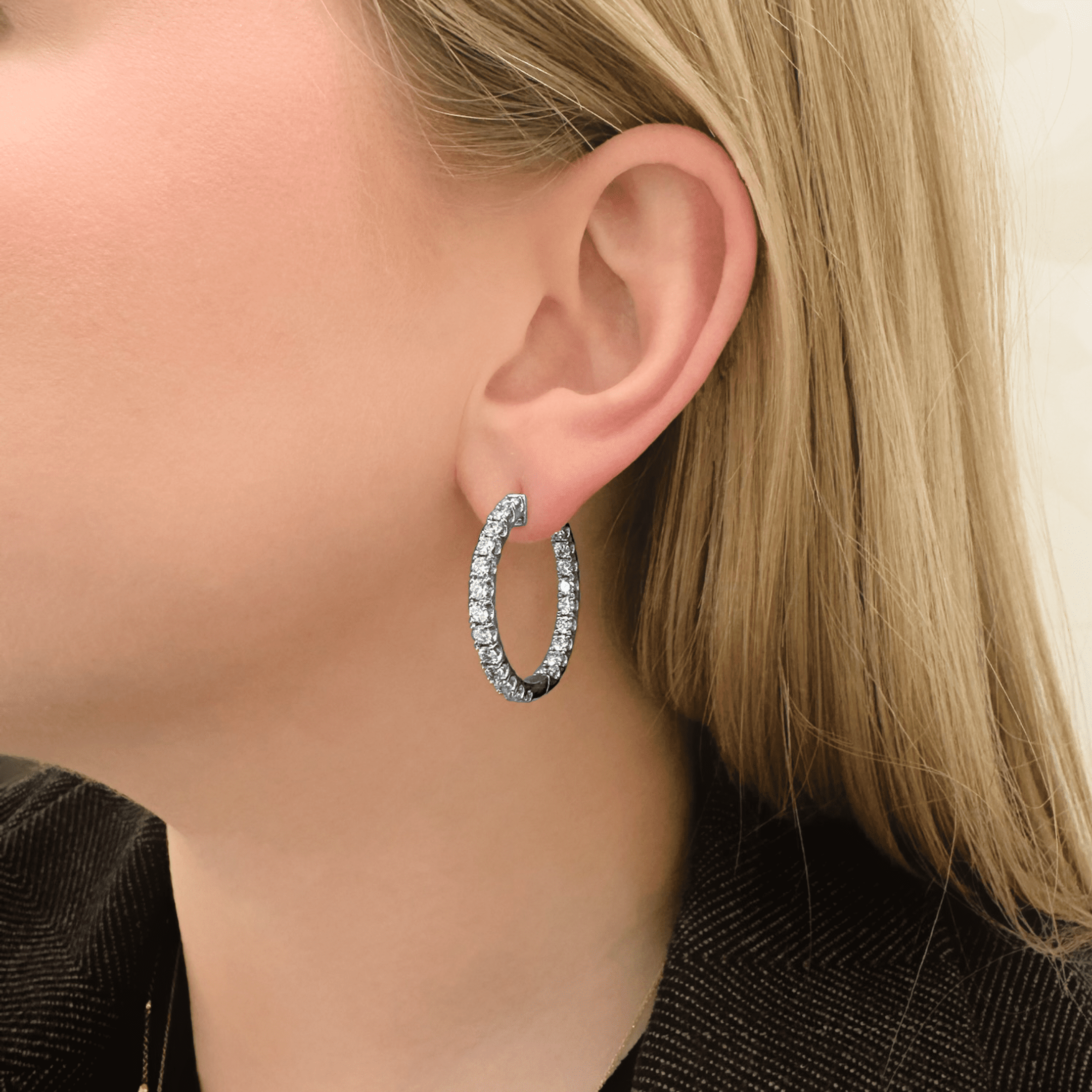 3.85 carat Inside Out Diamond Hoop Earrings in White Gold