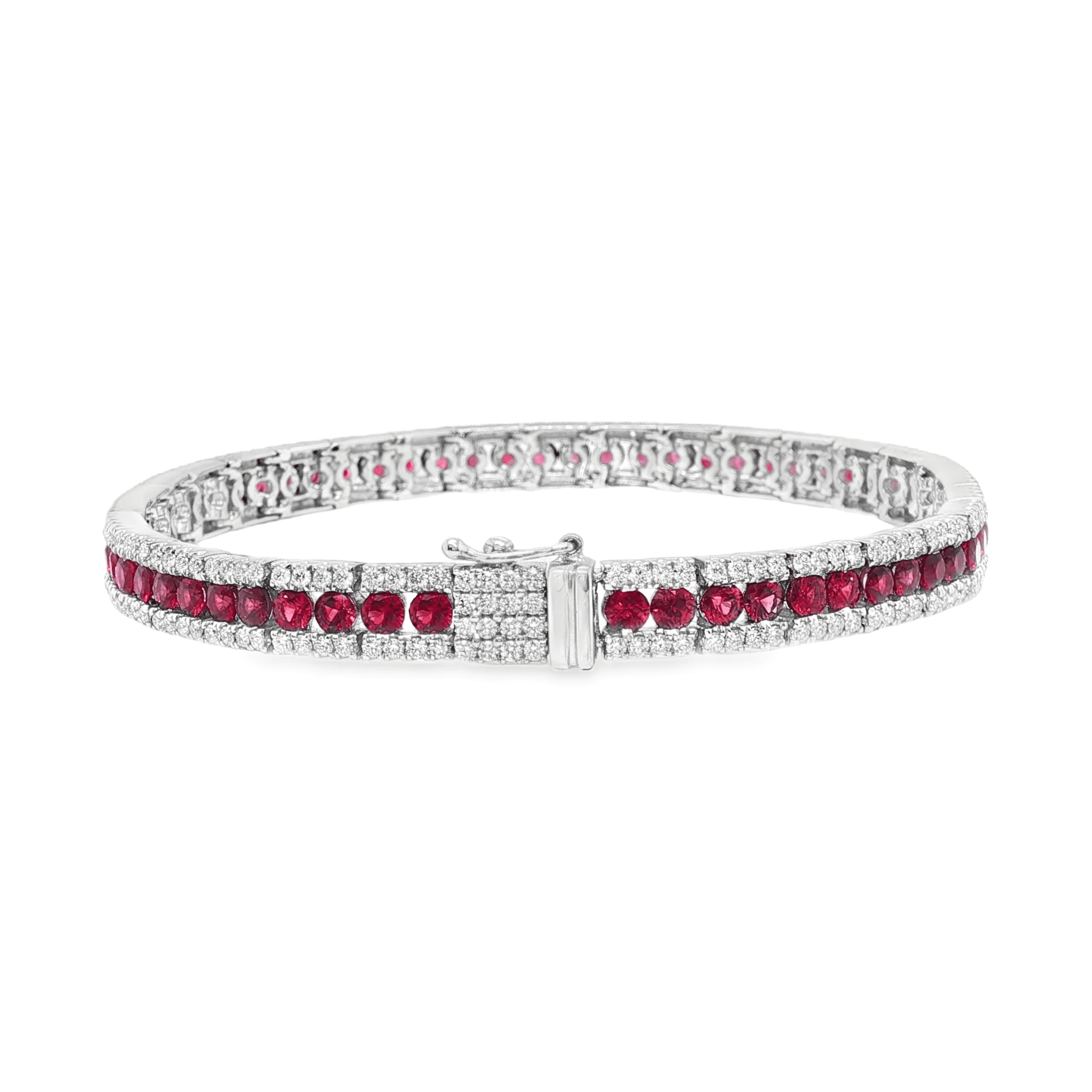 Beautiful ruby and diamond three row bracelet from Spark Creations. Brilliant Ruby’s totaling 4.96 carats interspersed with 1.84 carats diamonds are set in 18K white gold.