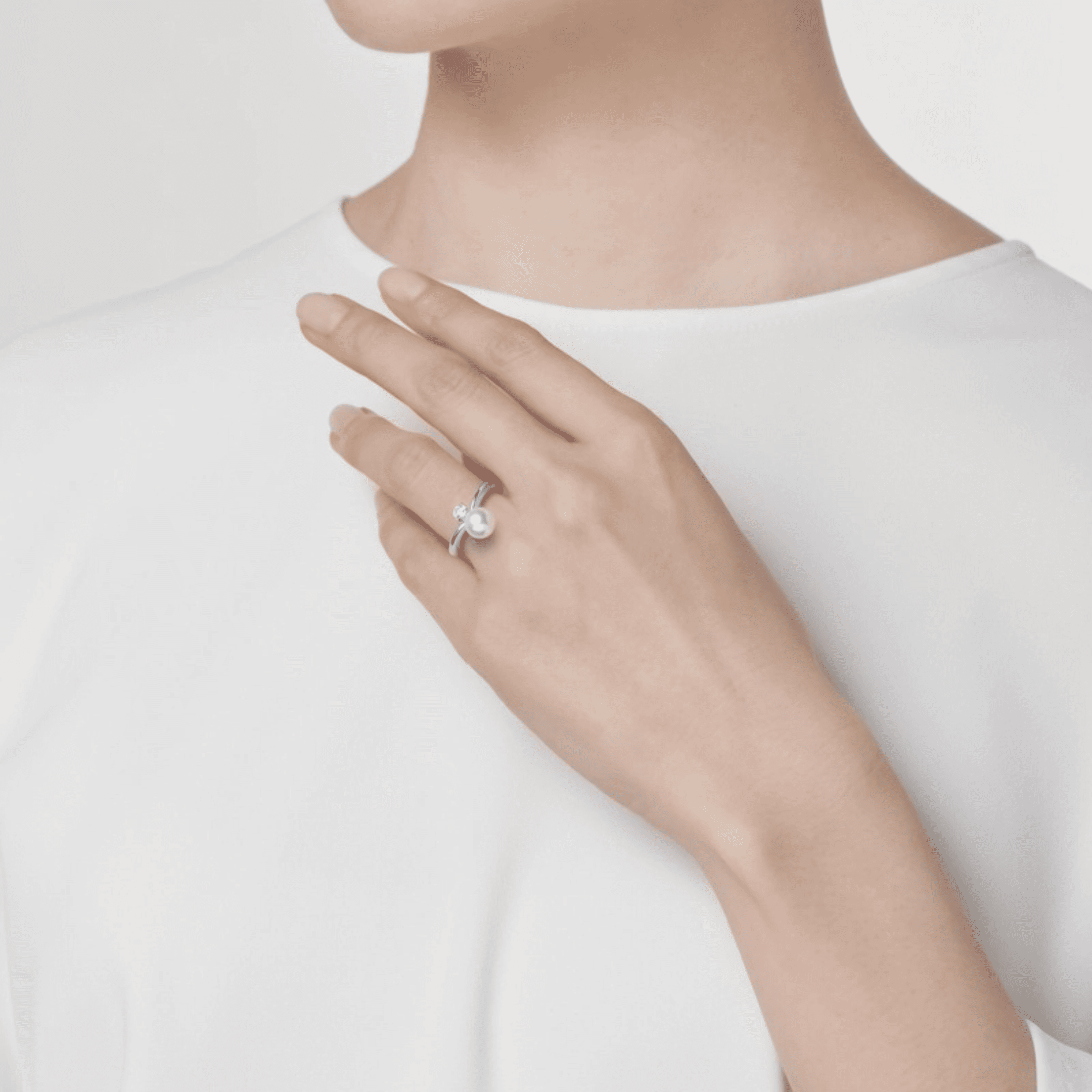 Akoya Cultured A+ Pearl and 0.15 carat Diamond Ring in Platinum