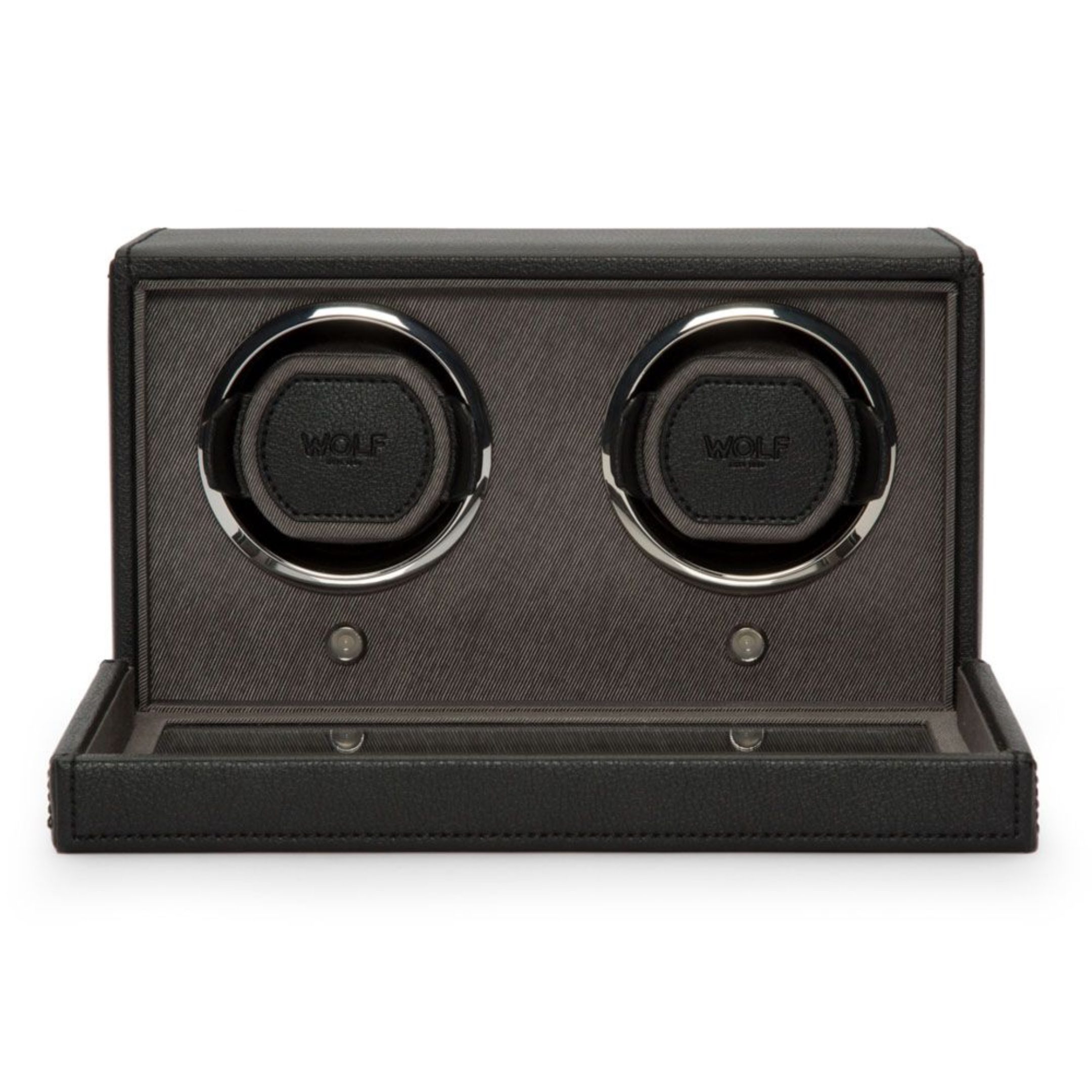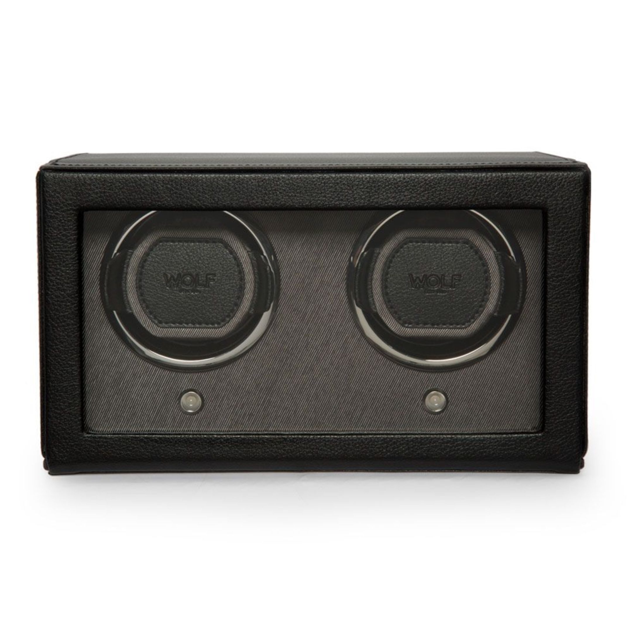 WOLF Cub Double Watch Winder with Cover in Black Vegan Leather – 10″ L x 6″ W x 5.75″ H