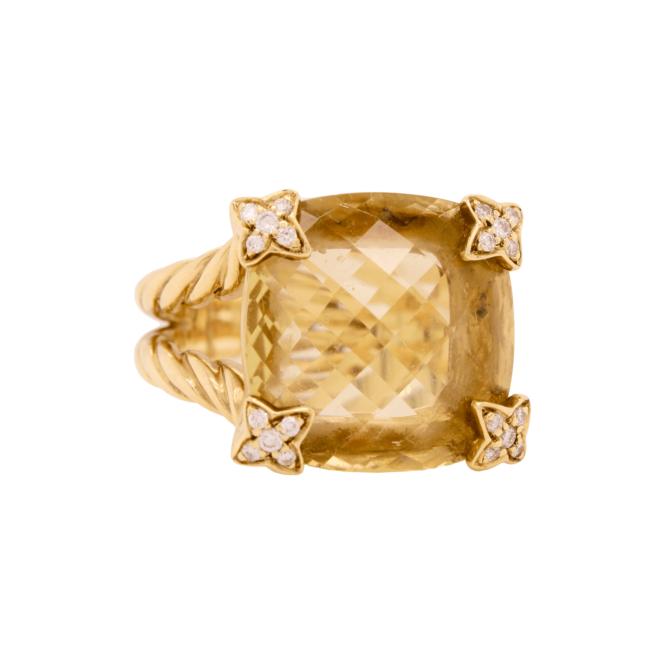 David Yurman Chatelaine Citrine Cushion Ring in Yellow Gold