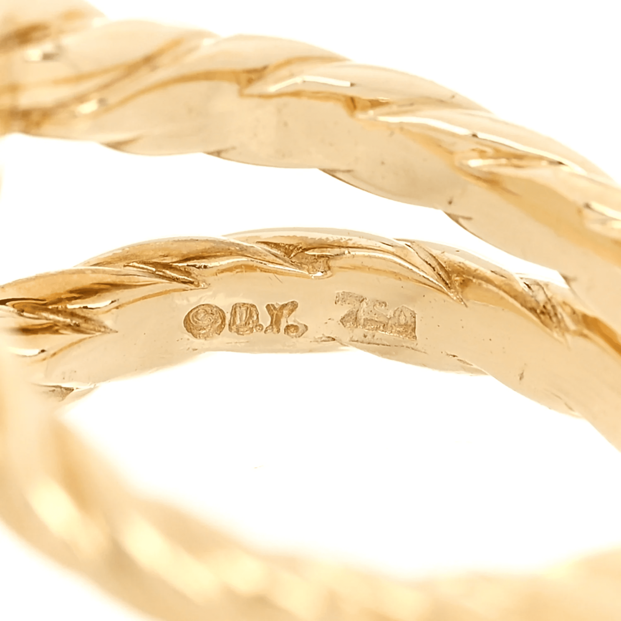 DAVID YURMAN 18K Yellow Gold Citrine Diamond 15mm Cushion On Point Ring. This ring is crafted of 18 karat yellow gold and features a double cable style split shank band with a cushion cut Citrine stone adorned with pave diamond quatrefoil prongs, approximately .10 total carat weight.