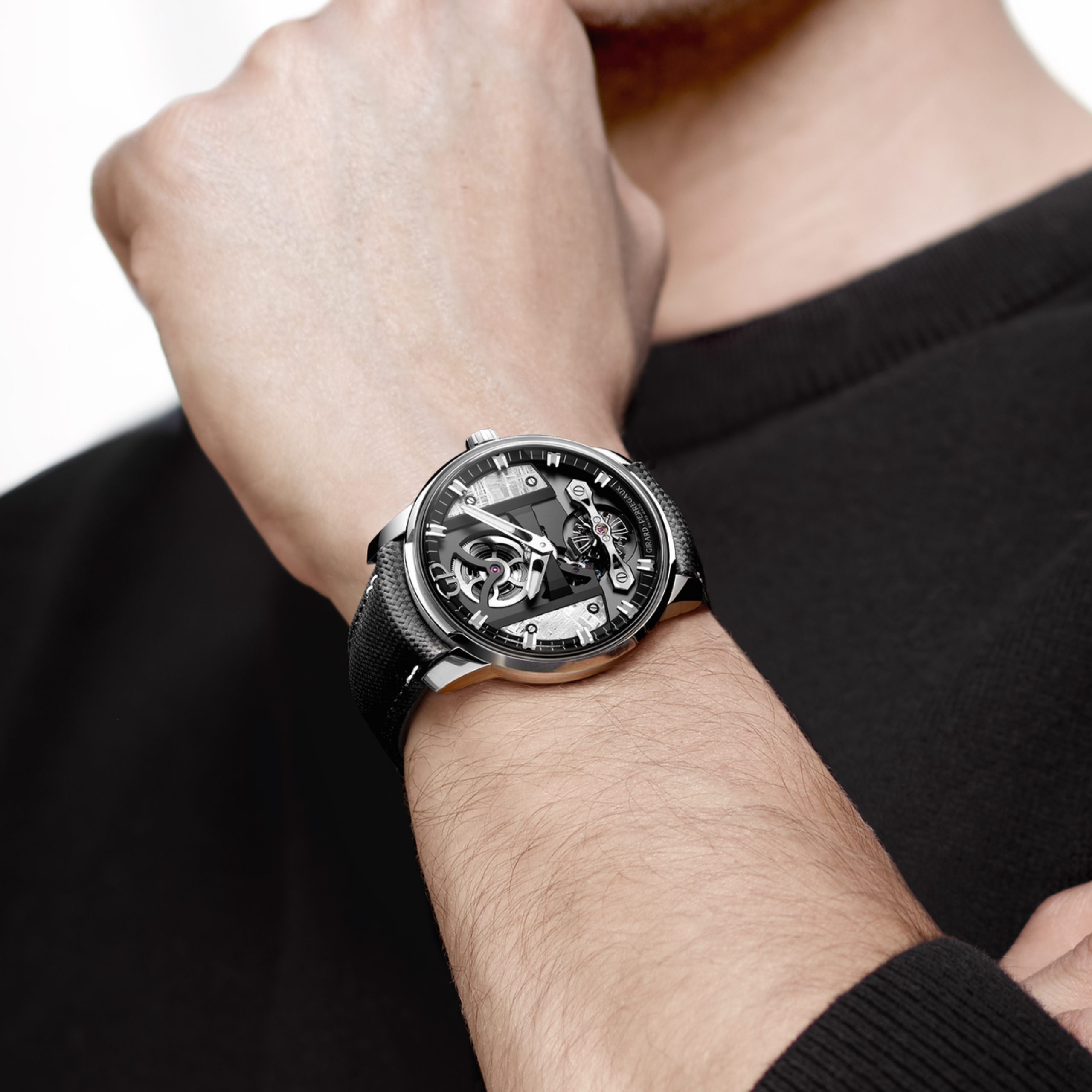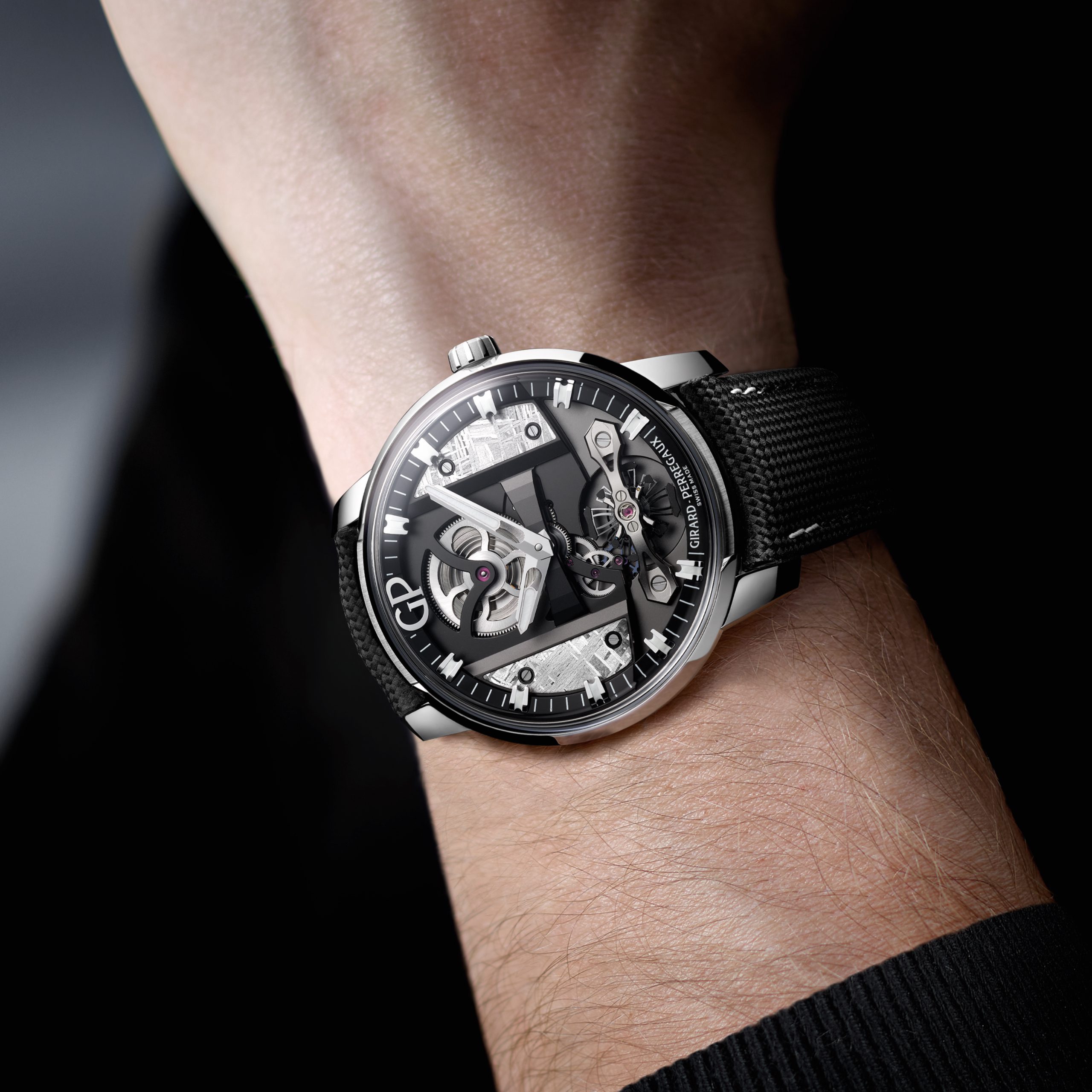 Girard Perregaux Bridges Collection Free Bridge Meteorite Automatic 44mm Stainless Steel on Strap, 54 hour power reserve, hours and minutes, Incorporating two meteorite plates, 2024 Novelty
