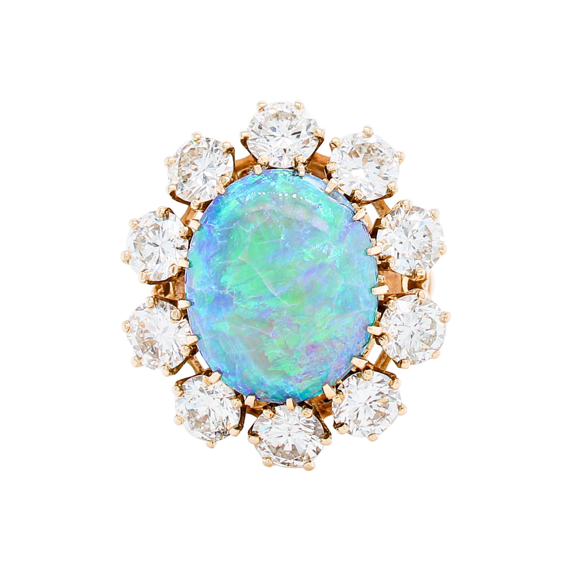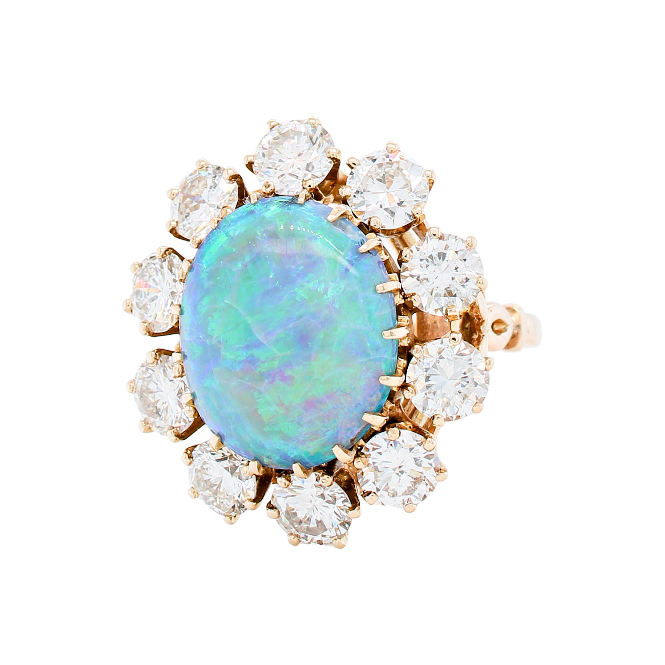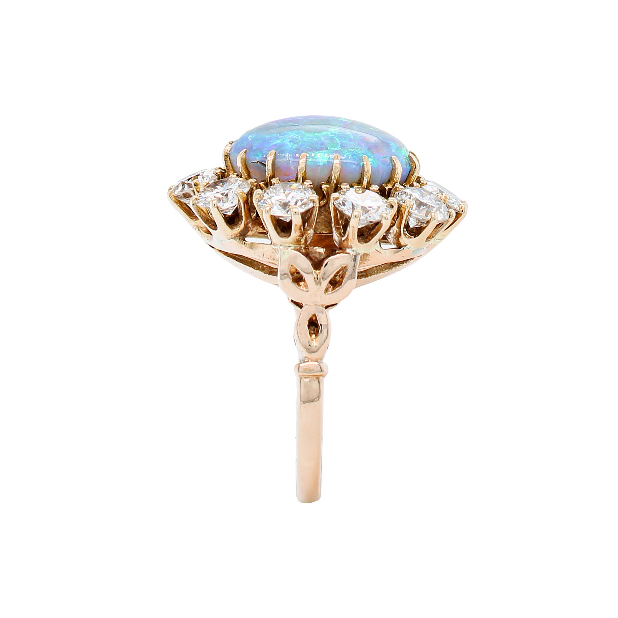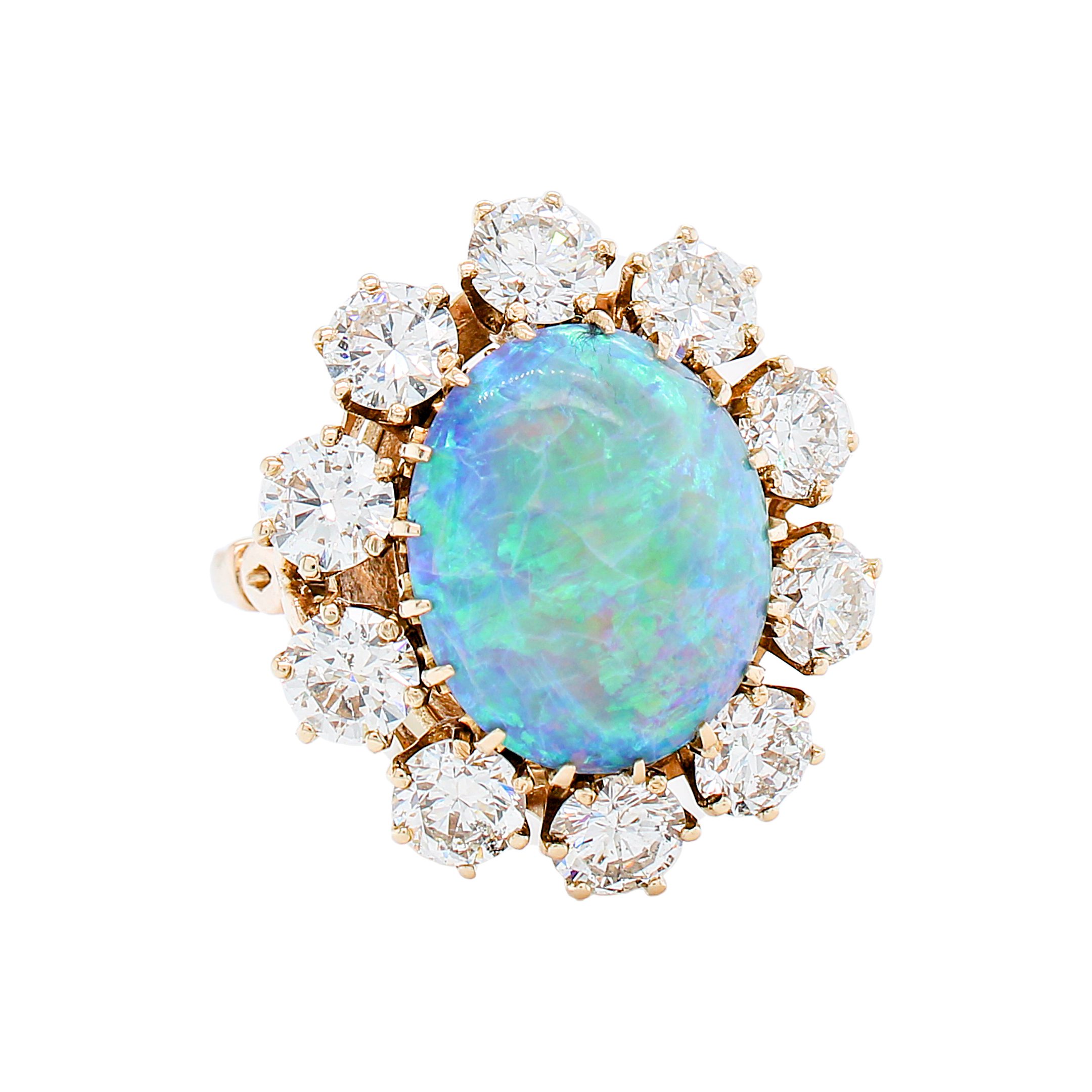 Victorian Black Opal and 3.40 carat Diamond Ring in Yellow Gold
