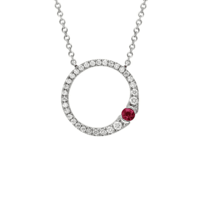 Marshall PierceRuby off-set Diamond Circle Stationary Pendant Necklace in White Gold