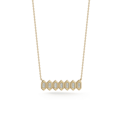 Dana Rebecca DesignsSadie Pearl Baguette Hexagon Bar Pendant in Yellow Gold