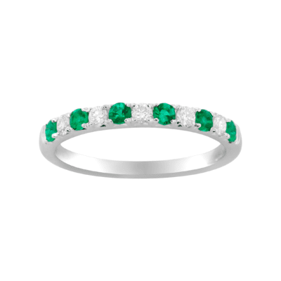 SparkAlternating 0.24 carat Emerald and 0.20 carat Diamond Ring in White Gold