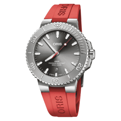 Aquis Date Relief Grey Dial 43.5mm on Red Rubber Strap